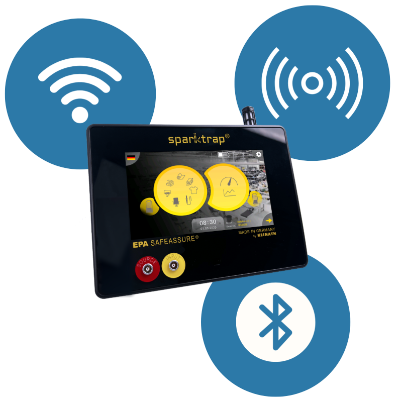 Our devices are equipped with Bluetooth, RFID and WLAN interfaces to enable wireless, smart and efficient ESD measurement. Whether wireless sensor connection, automated identification via RFID or network integration via WLAN - with EPA SafeAssure you are ideally equipped for the digital future.